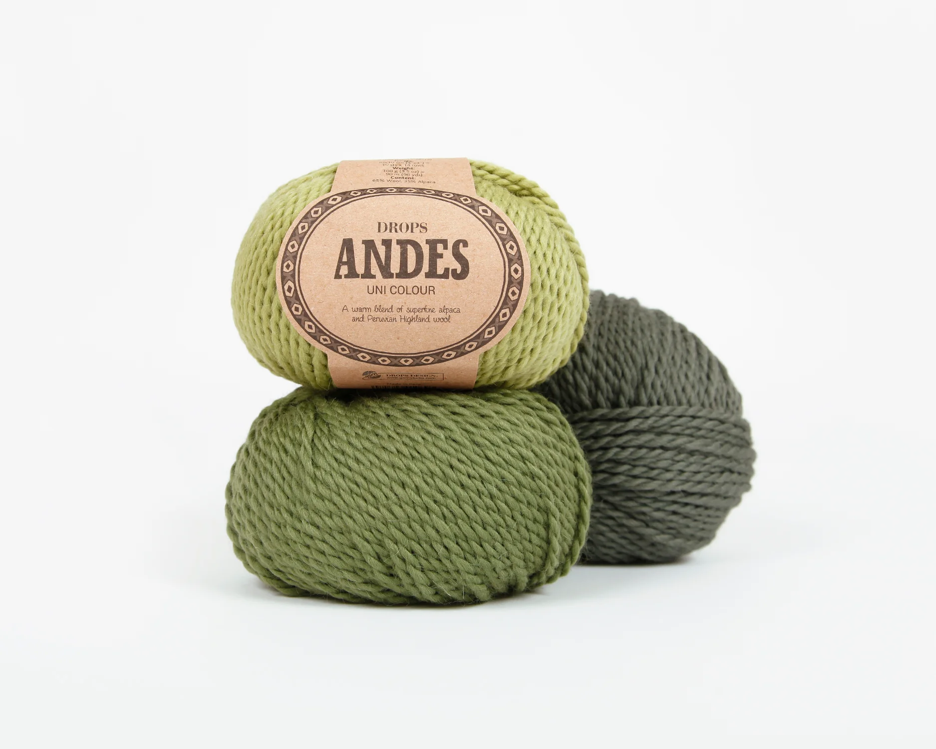 DROPS Andes ist ein 2-fädiges, traditionell gesponnenes Garn aus 65% Peruanischer Hochlandwolle und 35% Alpaka superfine. In der Mischung sorgt die Alpakafaser für die seidenweiche Textur, während die Wolle die Formstabilität erhöht.