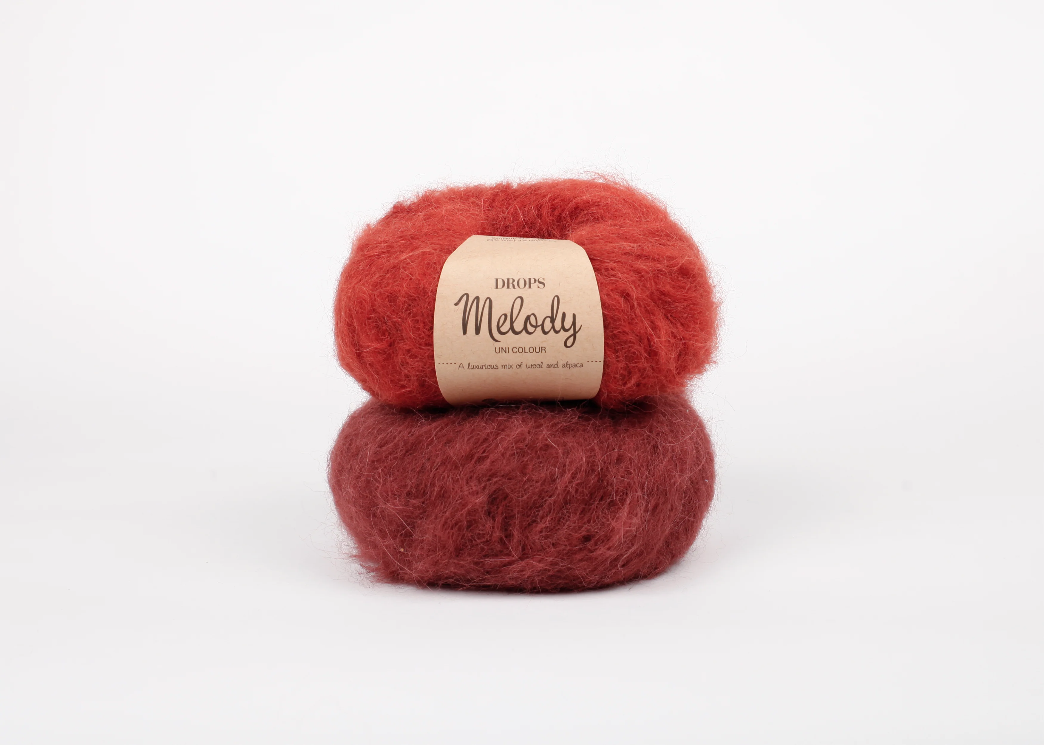 DROPS Melody ist ein weiches und edles Garn aus Alpaka superfine und Merinowolle. Die Optik dieses warmen Garns erinnert an Mohair und die Farbauswahl umfasst zarte, neutrale Beige- und Grautöne bis zu wunderbarem Rot und Lila. Es gibt eine große Auswahl an Anleitungen für Garngruppe D und Melody ist ein perfekter Ersatz für die nicht mehr erhältliche Garnqualität DROPS Vienna.