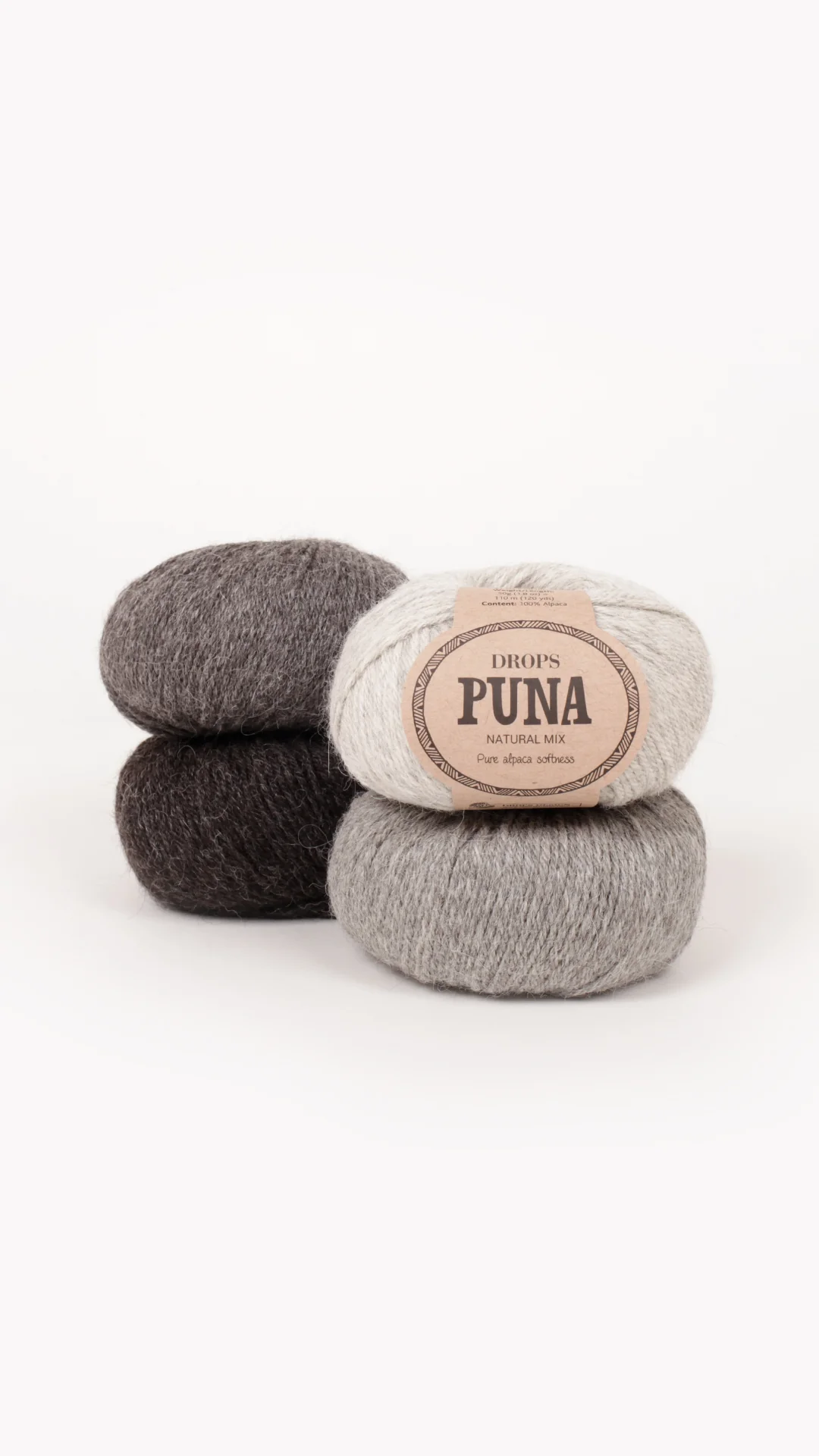 DROPS Puna ist ein wunderschönes weiches und leichtes Garn aus 100% reinem Alpaka superfine, das sich für jede Art von Kleidung eignet. Puna kann sogar direkt auf der Haut getragen werden. Das Garn besteht aus 4 Fäden unbehandeltem Alpaka superfine, das heißt, das Material wurde nur gewaschen und keinerlei chemischer Behandlung ausgesetzt. Das bringt die natürlichen Eigenschaften der Faser zur Geltung und ergibt gleichzeitig eine bessere Form und Textur.