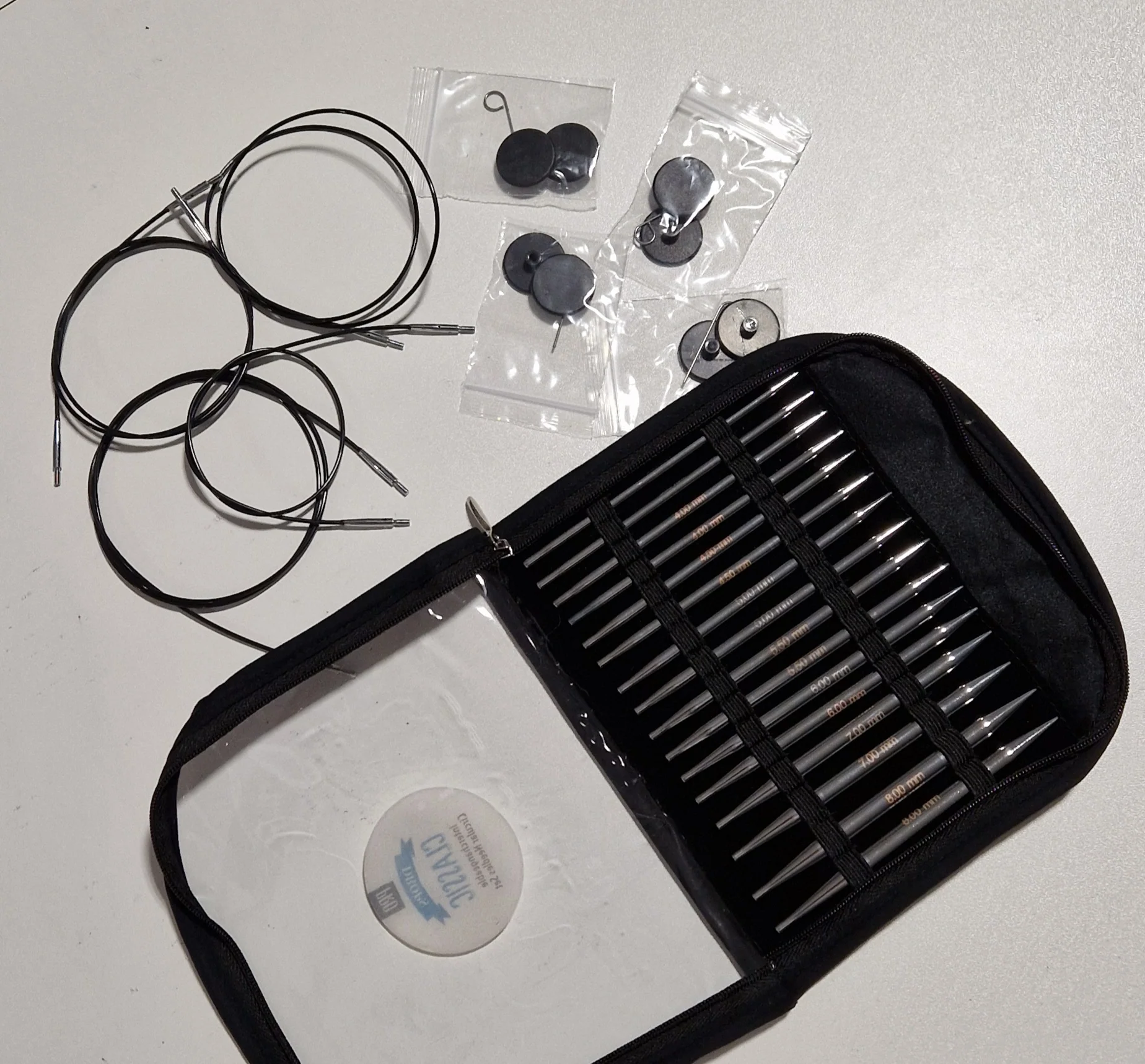 Mit diesem Nadelspitzen-Set aus vernickeltem Metall haben Sie immer alles dabei. In einem transparenten Nadeltäschchen mit Reißverschluss präsentiert, umfasst das Set je 1 Paar Rundnadelspitzen in 8 Stärken: 3.5, 4.0, 4.5, 5.0, 5.5, 6.0, 7.0 und 8.0 mm, dazu 4 Seile in den Längen 60, 80 (x2) und 100 cm mit Seilkappen und Schraubenschlüsseln sowie eine Anleitung.